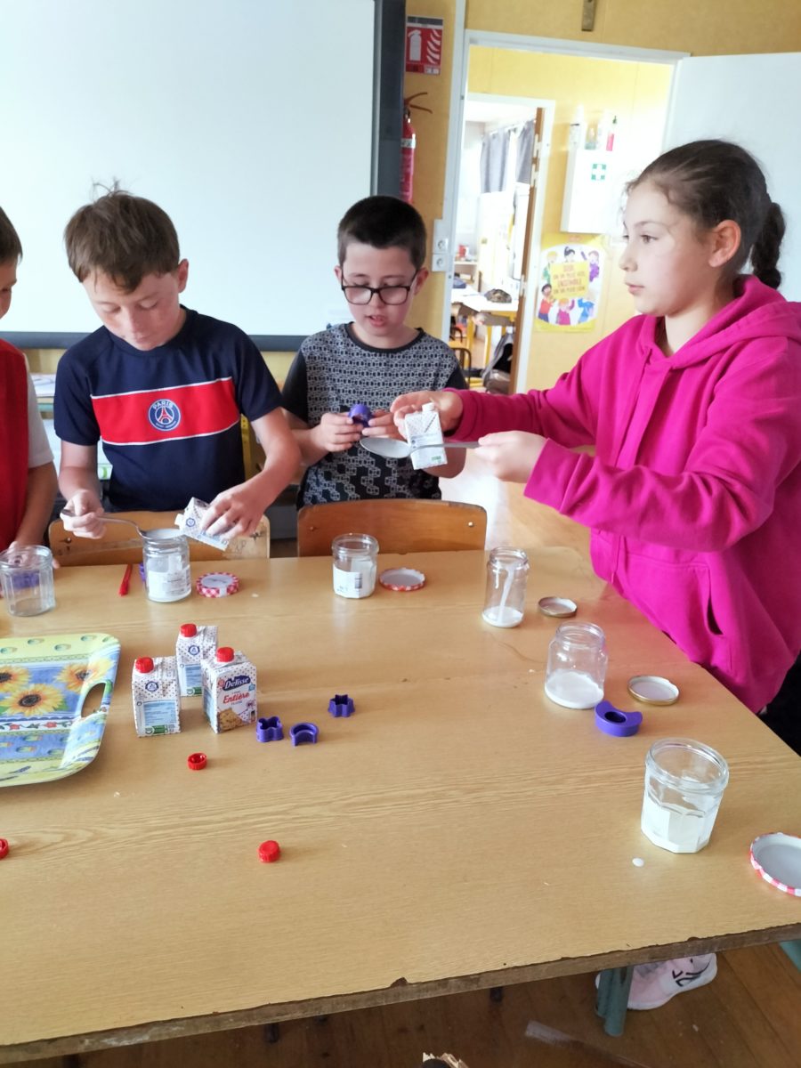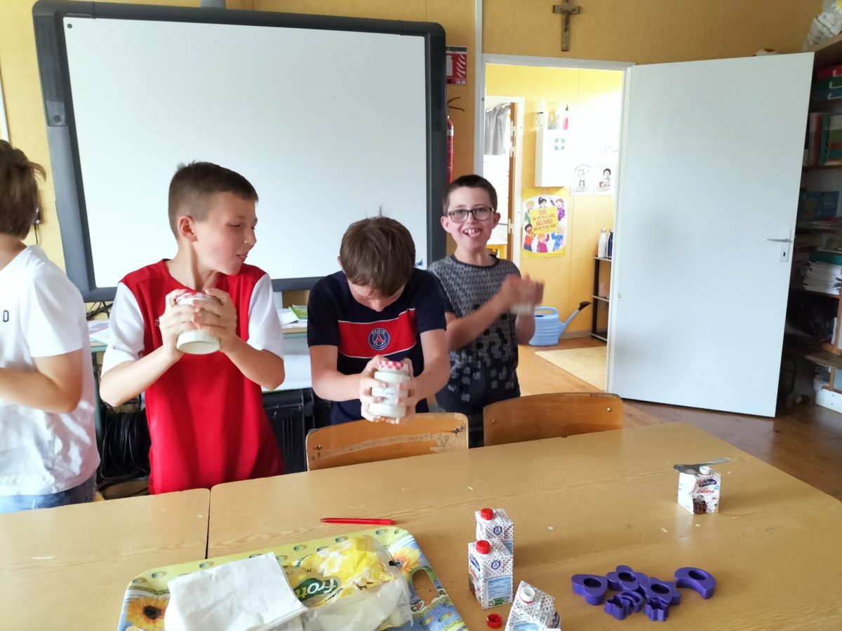 Tout au long de l’année, les élèves réalisent différents bricolages en lien avec le thème de l’année ( paysages africains, cerisiers japonais, boomerang australien, bâtons de pluie,… Différentes techniques peuvent être utilisées comme l’encre soufflée, le mélange encre et eau,…
