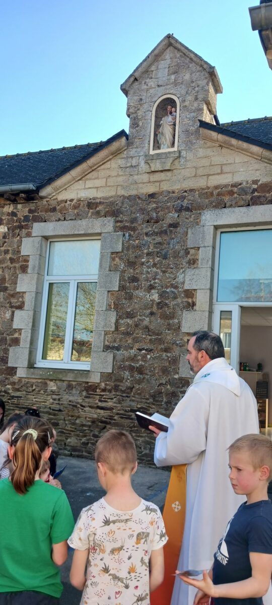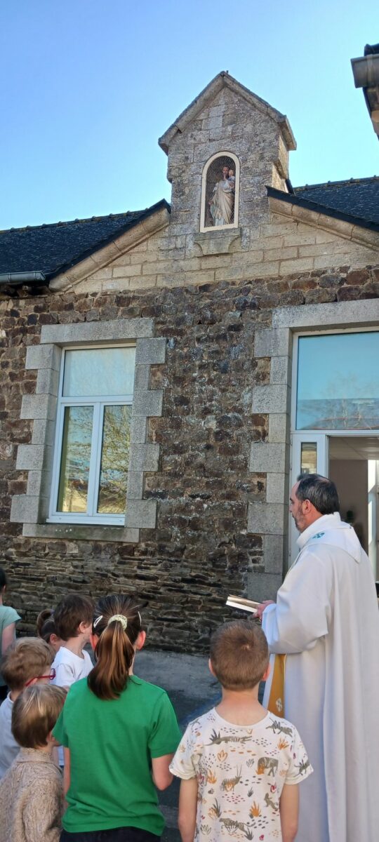 Une nouvelle statue de Saint Joseph a été installée dans la niche de notre école. Pour l’occasion, la bénédiction a été réalisée par le Père Guillaume le jeudi 19 mars ( jour de la Saint Joseph ). Ce temps a permis aux enfants de découvrir notre Saint.